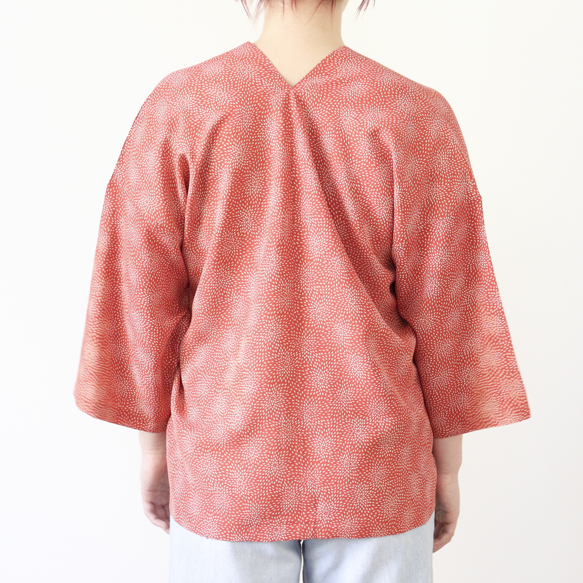 « Durant la période d’avant-guerre, une jeune femme du nom de Fumi donnait un coup de main à la boutique de kimono gérée par sa famille. Elle vivait un quotidien des plus calmes jusqu’au jour où elle eut le coup de foudre pour un jeune livreur venu déposer du textile au magasin. Ce dernier, apercevant la jeunette, déposa la marchandise et s’éloigna de la boutique en cachant un sourire bête des plus typiques. De livraison en livraison, le kimono avait uni ces deux jeunes âmes par un amour des plus simples. Cette histoire se conclut avec un mariage heureux, et si long, que plus d’un demi-siècle plus tard ils purent prendre dans leurs bras une arrière-petite-fille qui naquit en Suisse. C’est depuis son enfance que cette arrière-petite-fille, aujourd’hui créatrice, voit ce vêtement traditionnel comme un objet chaleureux animé par une pulsation rassurante. Comme la bienveillance des ancêtres qui nous enveloppe, la créatrice est convaincue que la soie vous couvrant vous guidera probablement vers des destins des plus inattendus, comme cela a été le cas pour ses arrière-grands-parents. »