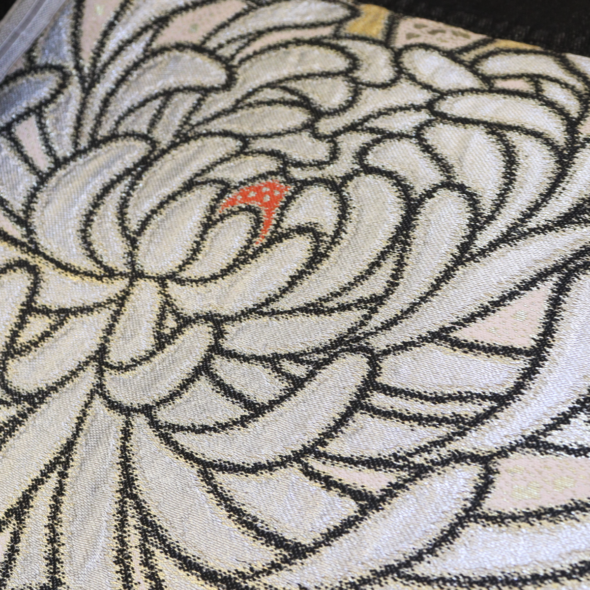 Matière: Veste 100% coton, décorée d’une ceinture « Obi » recyclée en soie, et rubans en polyester.